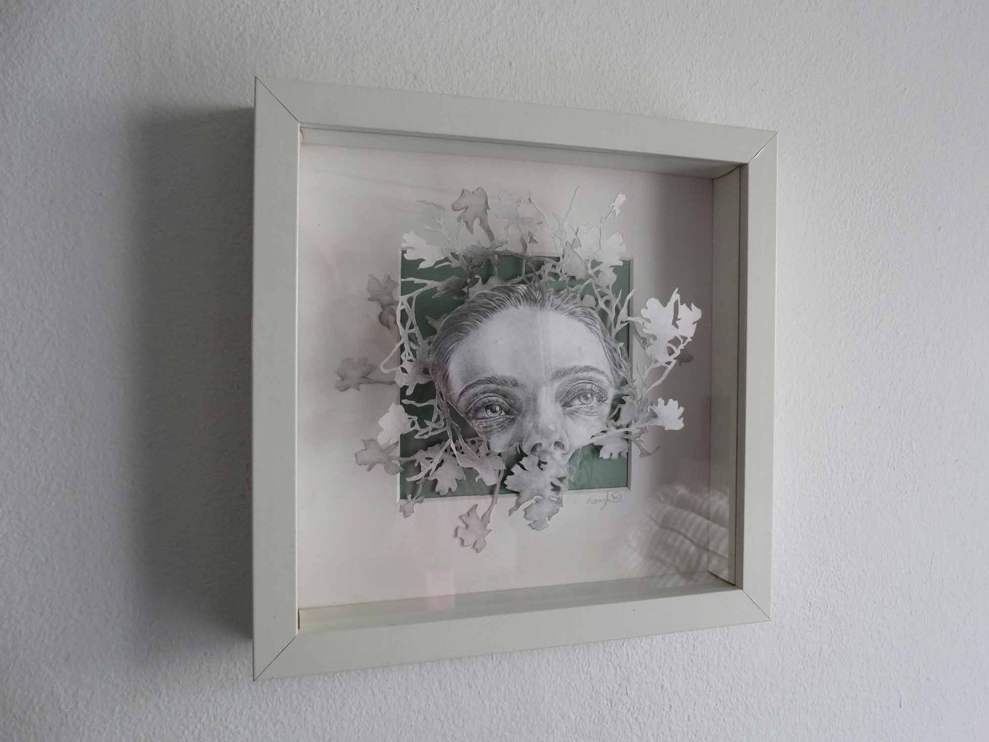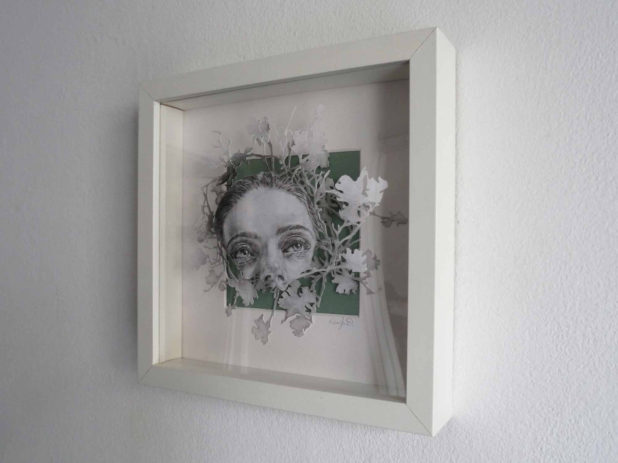 The artwork “Beneath the Blossoms” reveals a gentle metamorphosis of a human presence surrounded by soft floral light. The work reflects the silent dialogue between inner stillness and the natural world.