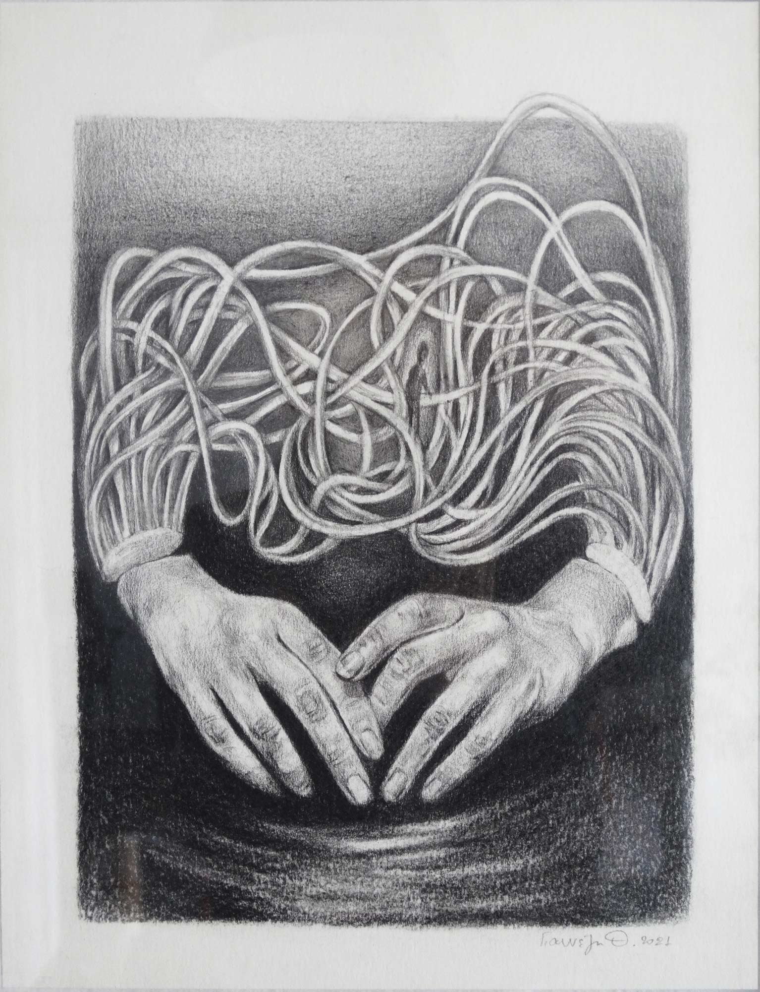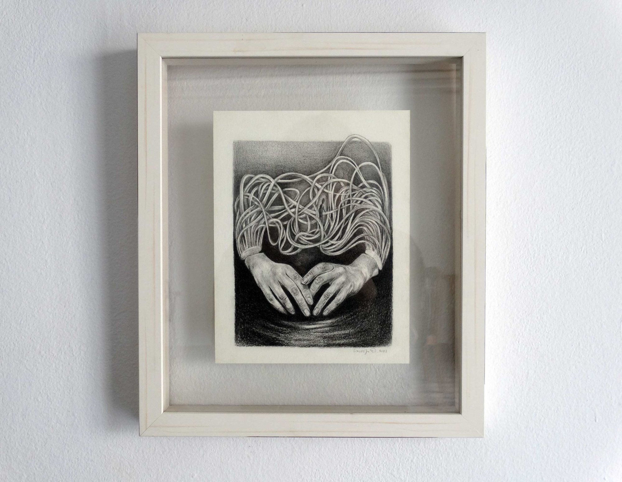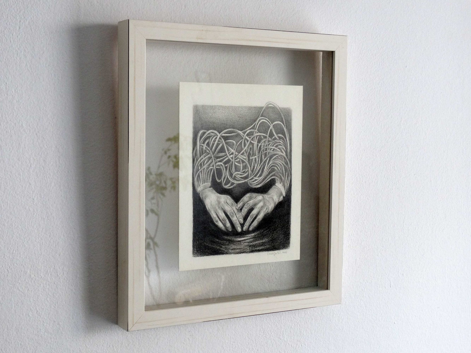 “Rise & Fall” is a framed pencil and charcoal drawing created in 2021 during my time in Indonesia.